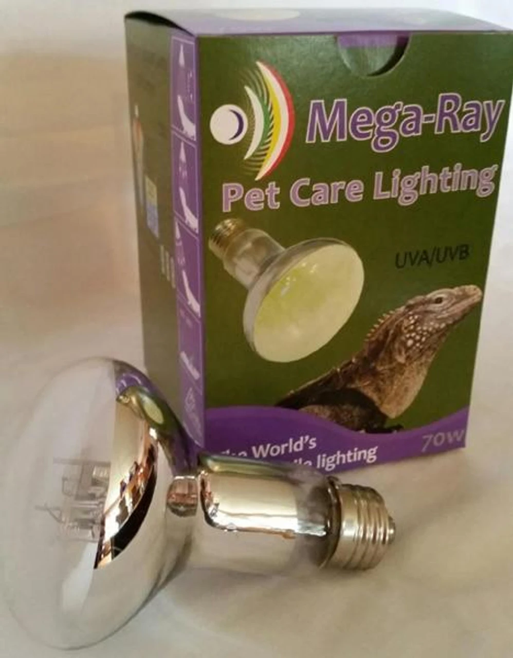Mega-Ray, always the first the first “real” 70 Watt Mercury Vapor Reptile Bulb and is the SMALLEST and best-in-class self-ballasted light that creates superior levels of UVA and UVB light. Provide your reptile with light that allows them to synthesize Vitamin D3 and prevents metabolic bone disease. It’s the only bulb to use our exclusive translucent magnesium oxide inner coating in the world, providing the necessary visible light, UVB, UVA and heat for UVB- dependent basking reptiles. For 15 years, Mega-Ray Bulbs have been shown to have the longest lasting UVB production of any other mercury vapor bulbs available.