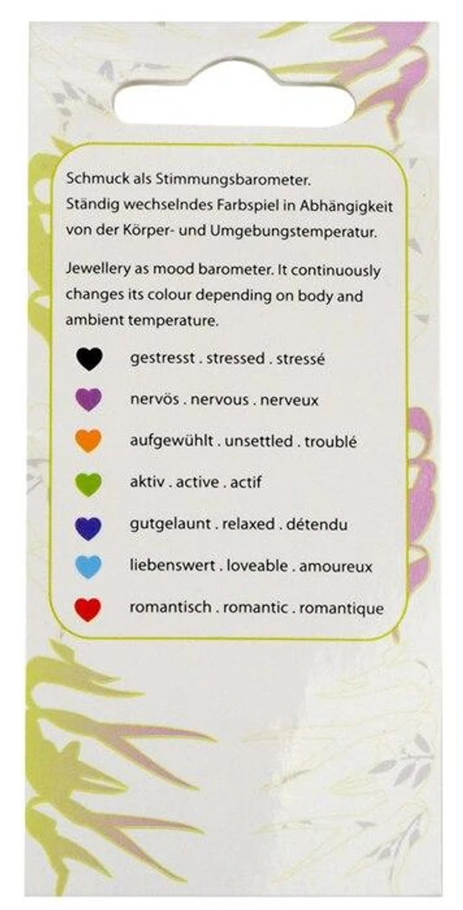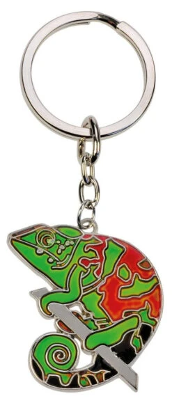 Keychain functioning as mood barometer. Chameleon changes its colours according to body and ambient temperature. The item is packed on elegant display cards with colour charts on the reverse side.