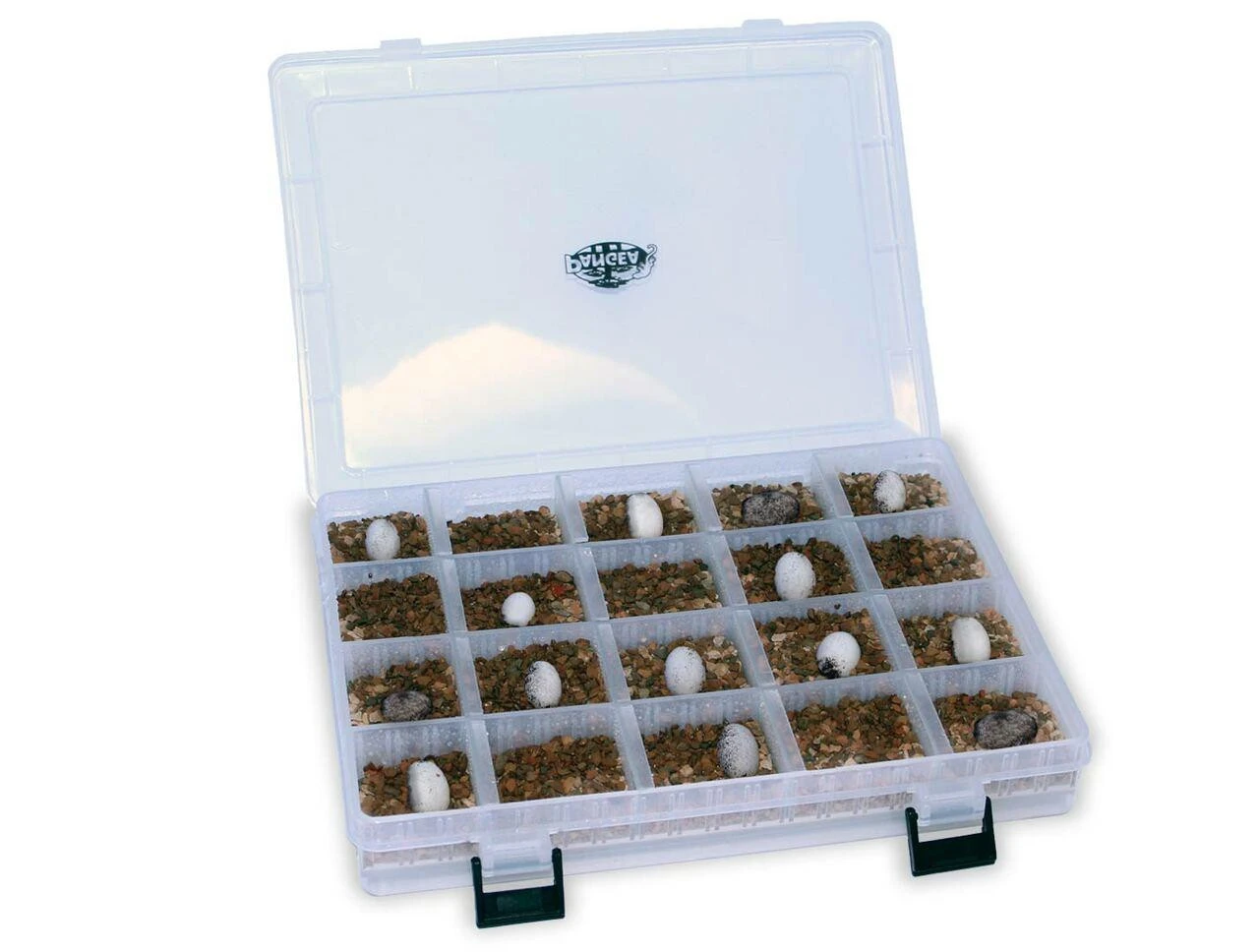 Pangea would like to introduce you to our new Pangea brand Reptile Egg Organizer! With up to 24 adjustable compartments this keeps your eggs separated and organized. Perfect for gecko and other smaller reptile eggs. Separation compartments can be removed or adjusted to a larger size if required. Our product keeps the humidity sealed within, so you do not need to drill any holes, just vent it weekly to give it some airflow. This egg organizer has a large clear viewing window, so you can track the growth of your eggs with minimal disruption. It also has rubber feet for easy stacking, which helps avoid sliding and dropping.