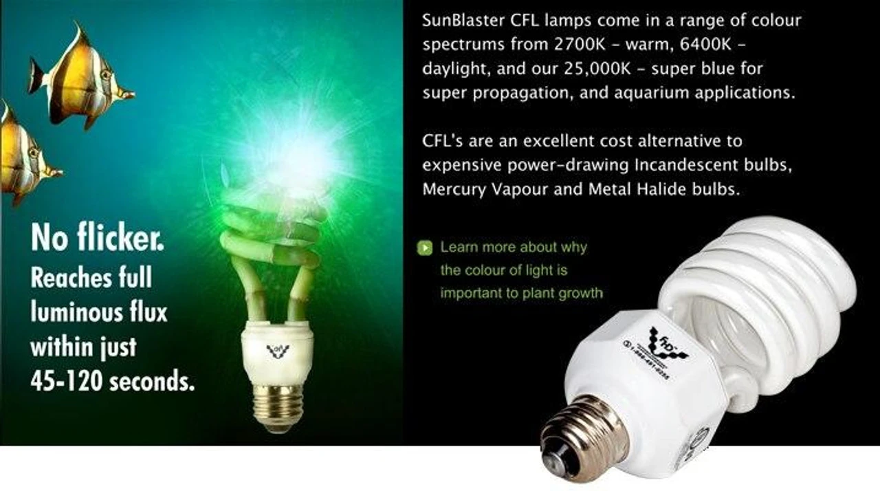 State-of-the-art electronic, compact fluorescent bulbs are the smallest sized full-spectrum, energy saving lights available. These 13 watt or 26 watt compact fluorescent bulbs fit into a variety of light fixtures such as table lamps, wall sconces and track lights. These bulbs are cost effective replacing your high-wattage, short-lived incandescent bulbs. Full spectrum compact fluorescent bulbs 6400 Kelvin, provide natural color comparable to sunlight, increases visual activity and reduces eye fatigue. These bulbs are excellent for indoor greenhouse applications, where the suns natural light is not available. Use 6400K for growth & 2700K for budding or flowering stages.